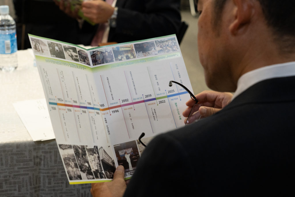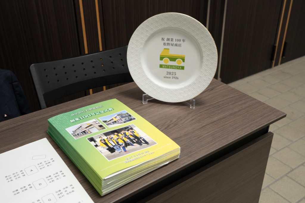 こちらは、これまでお世話になりました取引先、地元関係者の方などをお招きして節目の年を迎えましたことへの感謝をお伝えしました。