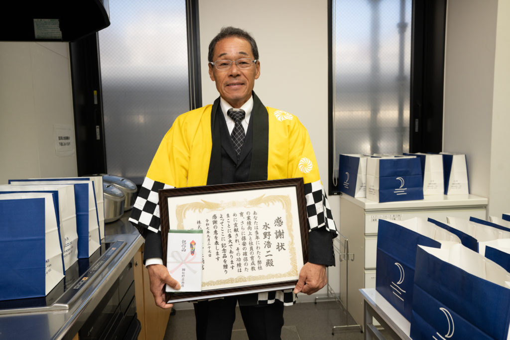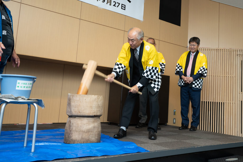 当店の社員も所属している『美濃源氏大太鼓保存会』の皆様による太鼓の演奏からスタートし、社長より感謝のご挨拶、40年以上勤めて頂いた社員への表彰、記念の餅つきなど、慎ましくも和やかな雰囲気で執り行うことができました。